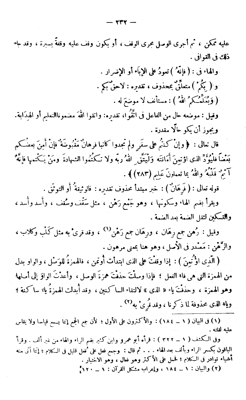 عَلَيْهِ مُمْكِنٌ، ثُمَّ أَجْرَى الْوَصْلَ مَجْرَى الْوَقْفِ، أَوْ يَكُونُ وَقَفَ عَلَيْهِ وَقْفَةً يَسِيرَةً، وَقَدْ جَاءَ ذَلِكَ فِي الْقَوَافِي. وَالْهَاءُ فِي: (فَإِنَّهُ) تَعُودُ عَلَى الْإِبَاءِ أَوِ الْإِضْرَارِ. وَ (بِكُمْ) : مُتَعَلِّقٌ بِمَحْذُوفٍ تَقْدِيرُهُ: لَاحِقٌ بِكُمْ. (وَيُعَلِّمُكُمُ اللَّهُ) : مُسْتَأْنَفٌ لَا مَوْضِعَ لَهُ.