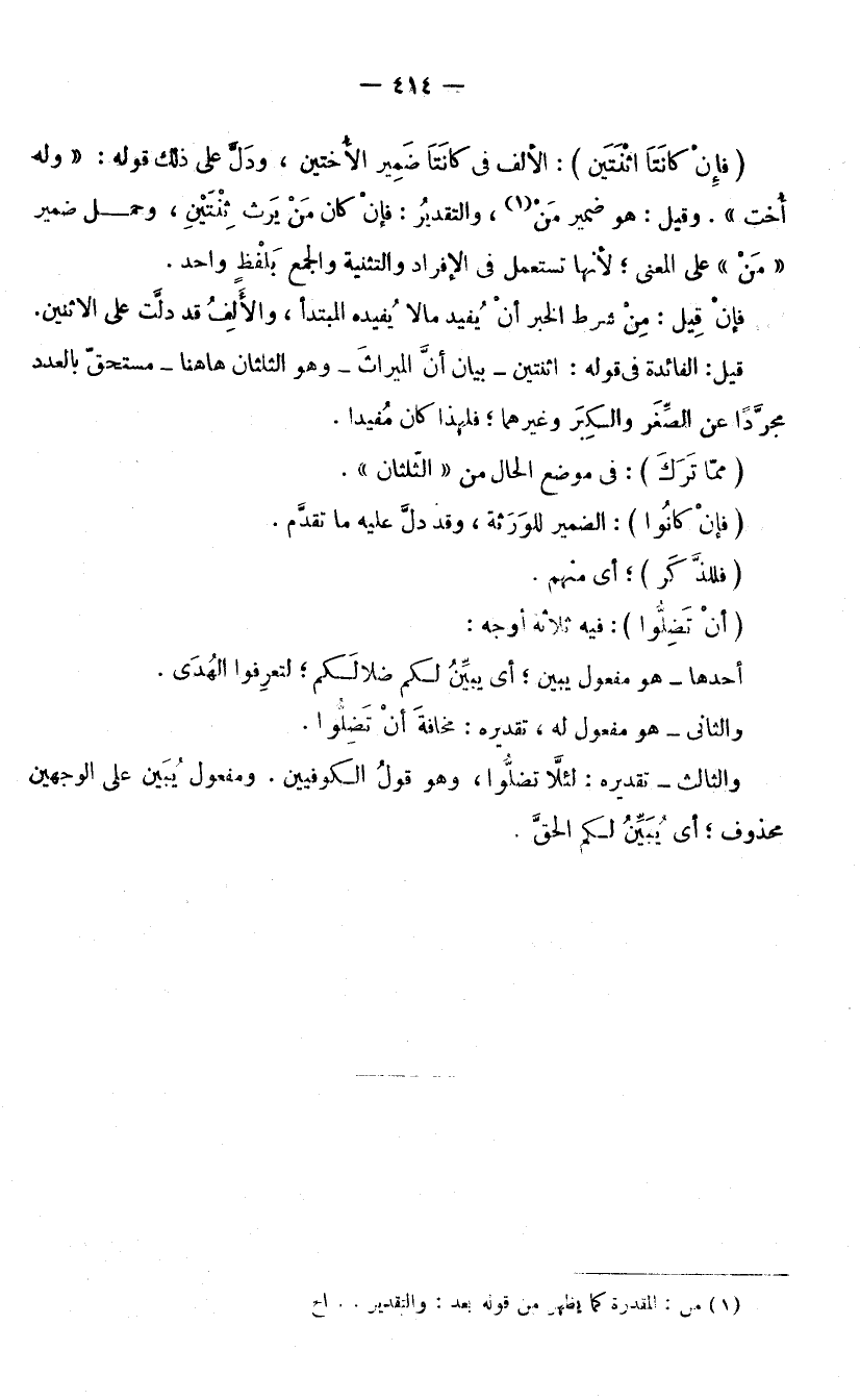 فَإِنْ كَانَتَا اثْنَتَيْنِ) : الْأَلِفُ فِي كَانَتَا ضَمِيرُ الْأُخْتَيْنِ، وَدَلَّ عَلَى ذَلِكَ قَوْلُهُ: وَلَهُ أُخْتٌ، وَقِيلَ: هُوَ ضَمِيرُ «مَنْ» ، وَالتَّقْدِيرُ: فَإِنْ كَانَ مَنْ يَرِثُ ثِنْتَيْنِ، وَحُمِلَ ضَمِيرُ مَنْ عَلَى الْمَعْنَى؛ لِأَنَّهَا تُسْتَعْمَلُ فِي الْإِفْرَادِ وَالتَّثْنِيَةِ وَالْجَمْعِ بِلَفْظٍ وَاحِدٍ.
