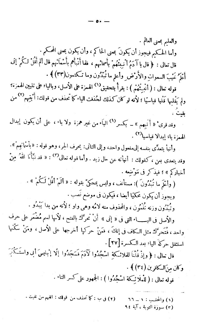 وَالْعَلِيمُ بِمَعْنَى الْعَالِمِ. وَأَمَّا الْحَكِيمُ فَيَجُوزُ أَنْ يَكُونَ بِمَعْنَى الْحَاكِمِ، وَأَنْ يَكُونَ بِمَعْنَى الْمُحْكَمِ.