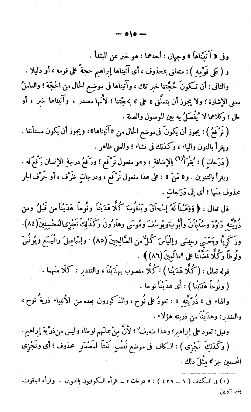 (نَرْفَعُ) : يَجُوزُ أَنْ يَكُونَ فِي مَوْضِعِ الْحَالِ مِنْ «آتَيْنَاهَا» ، وَيَجُوزُ أَنْ يَكُونَ مُسْتَأْنَفًا، وَيُقْرَأُ بِالنُّونِ وَالْيَاءِ، وَكَذَلِكَ فِي نَشَاءُ، وَالْمَعْنَى ظَاهِرٌ.