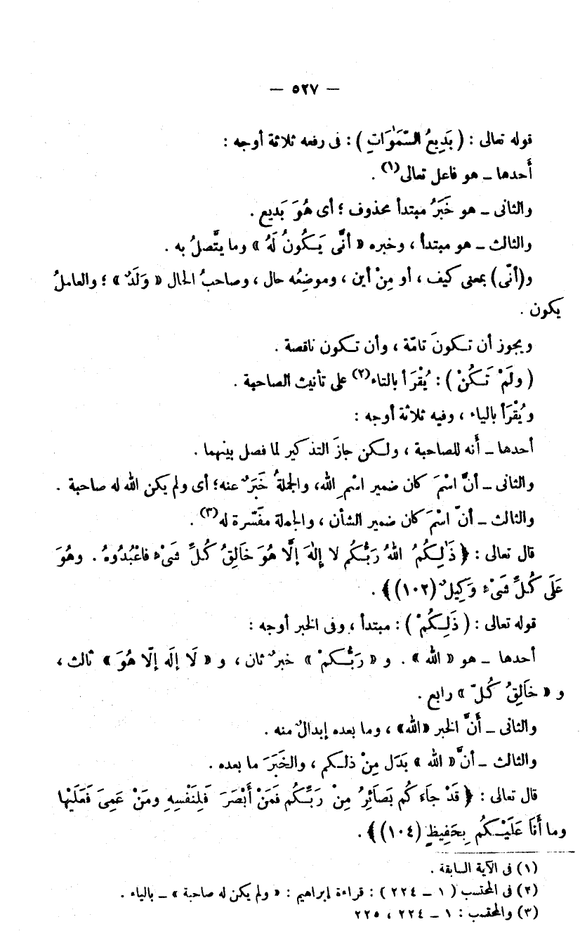 قَوْلُهُ تَعَالَى: (ذَلِكُمْ) : مُبْتَدَأٌ، وَفِي الْخَبَرِ أَوْجُهٌ: أَحَدُهَا: هُوَ: «اللَّهُ» وَ (رَبُّكُمُ) : خَبَرٌ ثَانٍ. وَ «لَا إِلَهَ إِلَّا هُوَ» ثَالِثٌ، وَ «خَالِقُ كُلِّ» رَابِعٌ. وَالثَّانِي: أَنَّ الْخَبَرَ «اللَّهُ» وَمَا بَعْدَهُ إِبْدَالٌ مِنْهُ. وَالثَّالِثُ: أَنَّ «اللَّهُ» بَدَلٌ مِنْ ذَلِكُمْ، وَالْخَبَرُ مَا بَعْدَهُ.