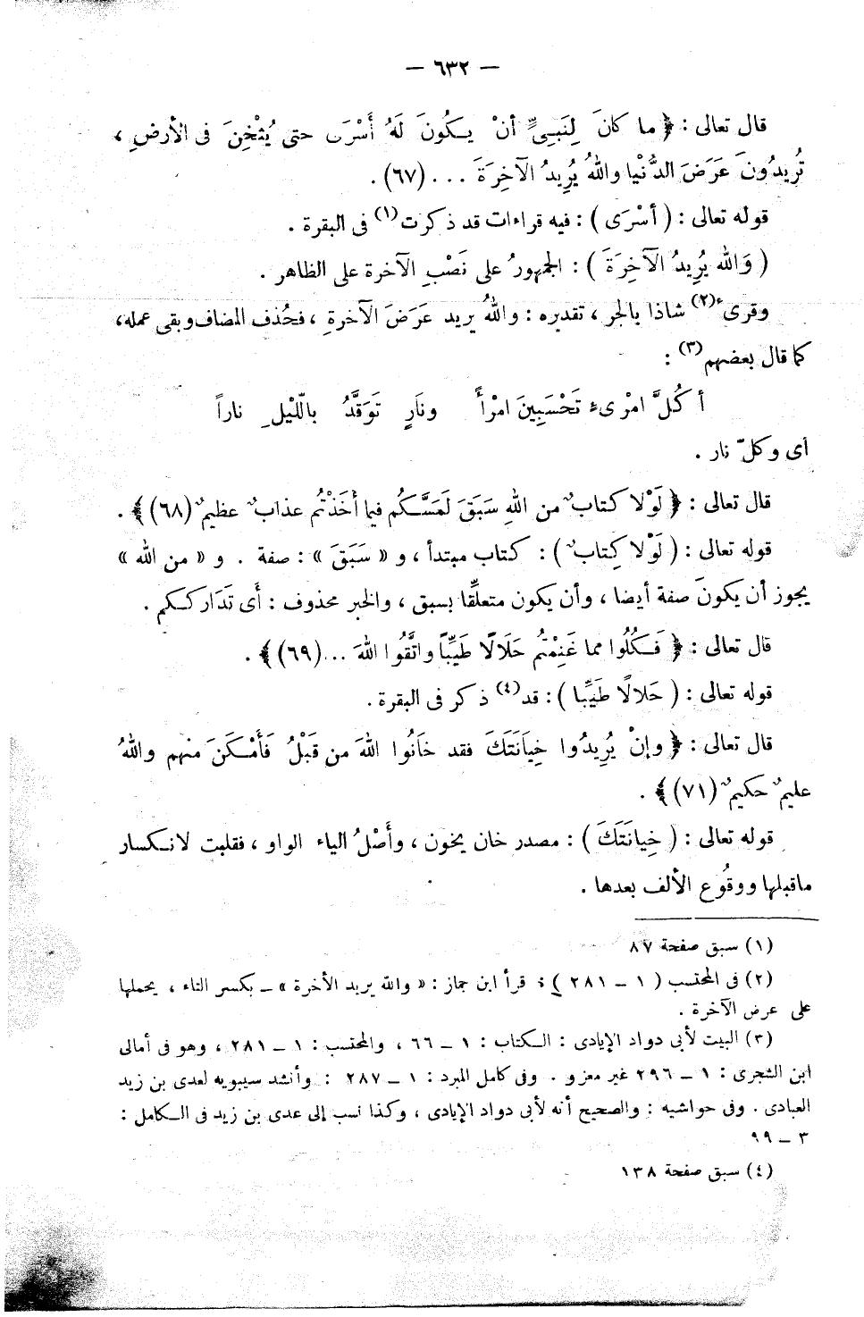 قَالَ تَعَالَى: (لَوْلَا كِتَابٌ مِنَ اللَّهِ سَبَقَ لَمَسَّكُمْ فِيمَا أَخَذْتُمْ عَذَابٌ عَظِيمٌ) (68) .