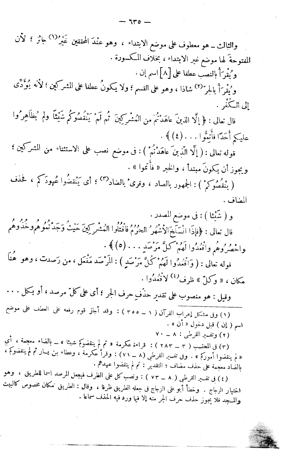 قَوْلُهُ تَعَالَى: (إِلَّا الَّذِينَ عَاهَدْتُمْ) : فِي مَوْضِعِ نَصْبٍ عَلَى الِاسْتِثْنَاءِ مِنَ الْمُشْرِكِينَ، وَيَجُوزُ أَنْ يَكُونَ مُبْتَدَأً، وَالْخَبَرُ فَأَتِمُّوا.