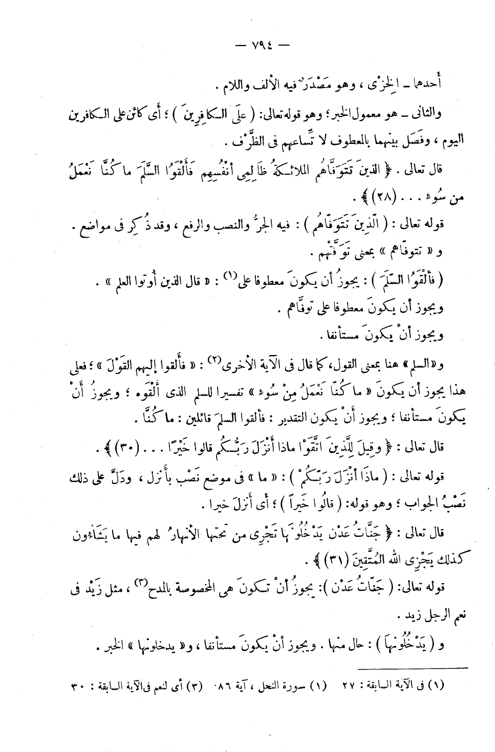 قَوْلُهُ تَعَالَى: (الَّذِينَ تَتَوَفَّاهُمُ) : فِي الْجَرِّ وَالنَّصْبِ وَالرَّفْعِ، وَقَدْ ذُكِرَ فِي مَوَاضِعَ. وَ (تَتَوَفَّاهُمُ) : بِمَعْنَى تَوَفَّتْهُمْ.