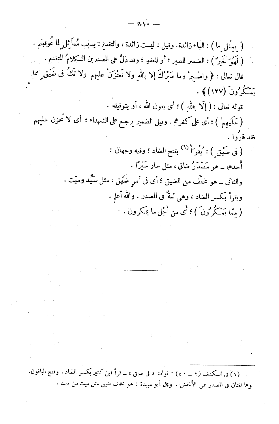 قَالَ تَعَالَى: (وَاصْبِرْ وَمَا صَبْرُكَ إِلَّا بِاللَّهِ وَلَا تَحْزَنْ عَلَيْهِمْ وَلَا تَكُ فِي ضَيْقٍ مِمَّا يَمْكُرُونَ (127)) .