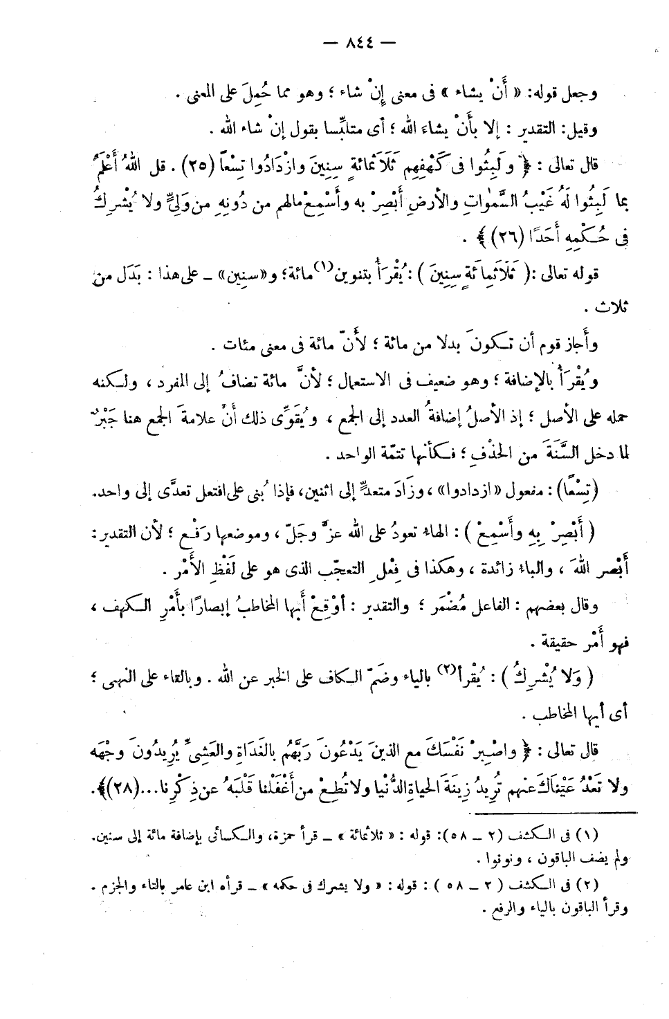 قَالَ تَعَالَى: (وَلَبِثُوا فِي كَهْفِهِمْ ثَلَاثَمِائَةٍ سِنِينَ وَازْدَادُوا تِسْعًا (25) قُلِ اللَّهُ أَعْلَمُ بِمَا لَبِثُوا لَهُ غَيْبُ السَّمَاوَاتِ وَالْأَرْضِ أَبْصِرْ بِهِ وَأَسْمِعْ مَا لَهُمْ مِنْ دُونِهِ مِنْ وَلِيٍّ وَلَا يُشْرِكُ فِي حُكْمِهِ أَحَدًا (26))