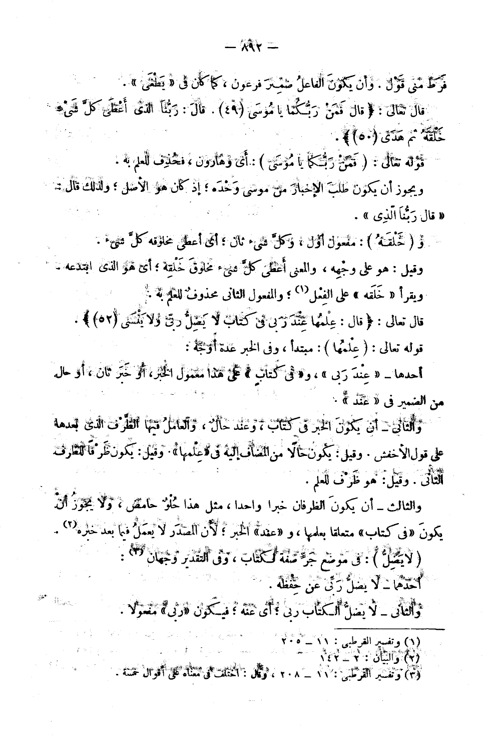 وَيَجُوزُ أَنْ يَكُونَ طَلَبَ الْإِخْبَارَ مِنْ مُوسَى وَحْدَهُ ; إِذْ كَانَ هُوَ الْأَصْلَ ; وَلِذَلِكَ قَالَ: «قَالَ رَبُّنَا الَّذِي» . وَ (خَلْقَهُ) : مَفْعُولٌ أَوَّلُ، وَ (كُلَّ شَيْءٍ) : ثَانٍ ; أَيْ أَعْطَى مَخْلُوقَهُ كُلَّ شَيْءٍ.