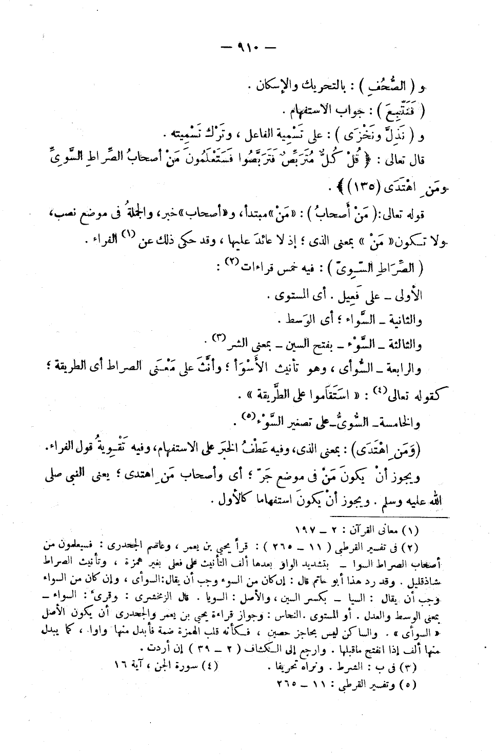 (الصِّرَاطِ السَّوِيِّ) : فِيهِ خَمْسُ قِرَاءَاتٍ: الْأُولَى: عَلَى فَعِيلٍ. أَيِ الْمُسْتَوِي.