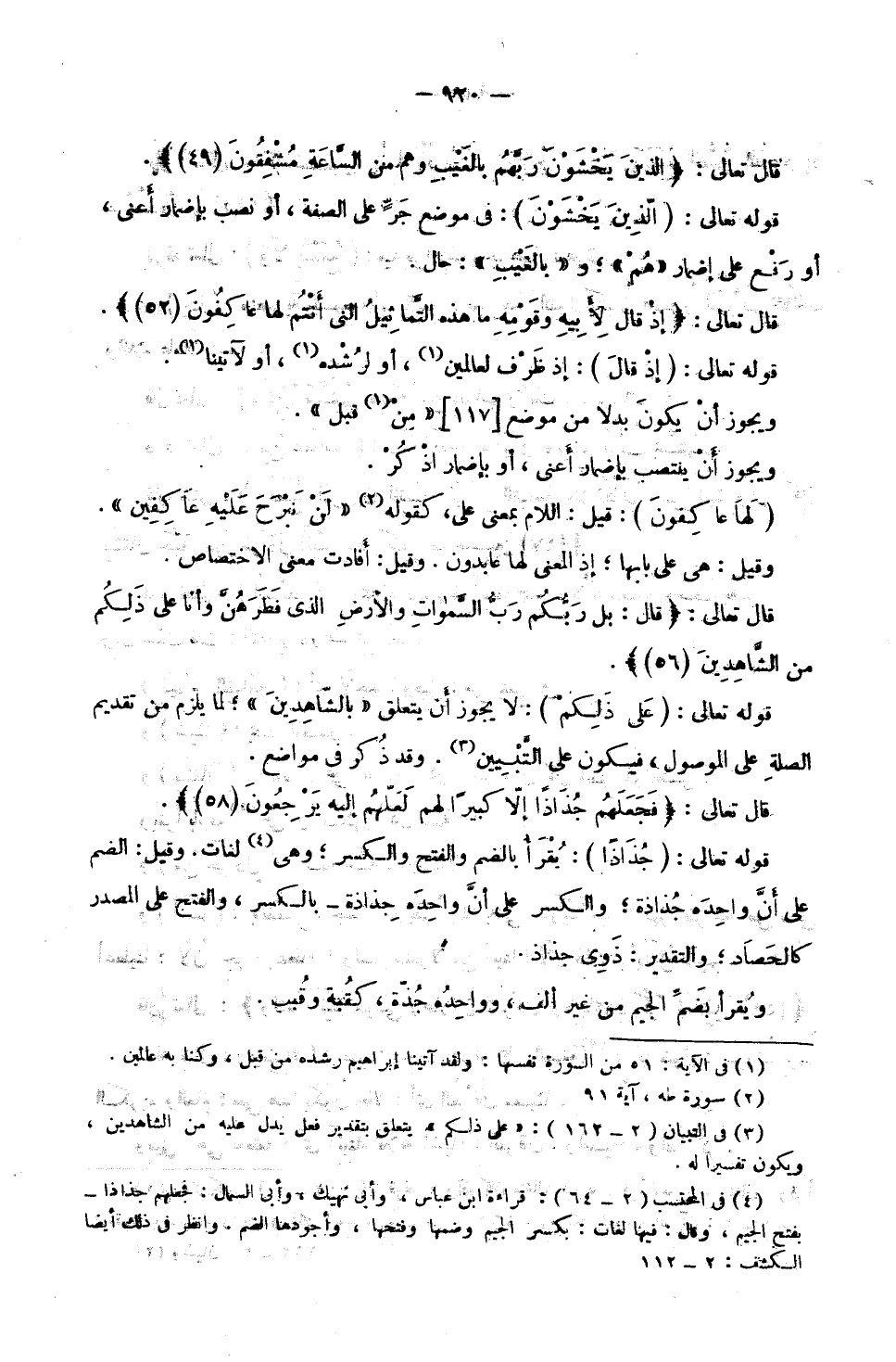 قَوْلُهُ تَعَالَى: (إِذْ قَالَ) : «إِذْ» ظَرْفٌ لِعَالِمِينَ، أَوْ لِرُشْدِهِ، أَوْ لِآتَيْنَا. . .