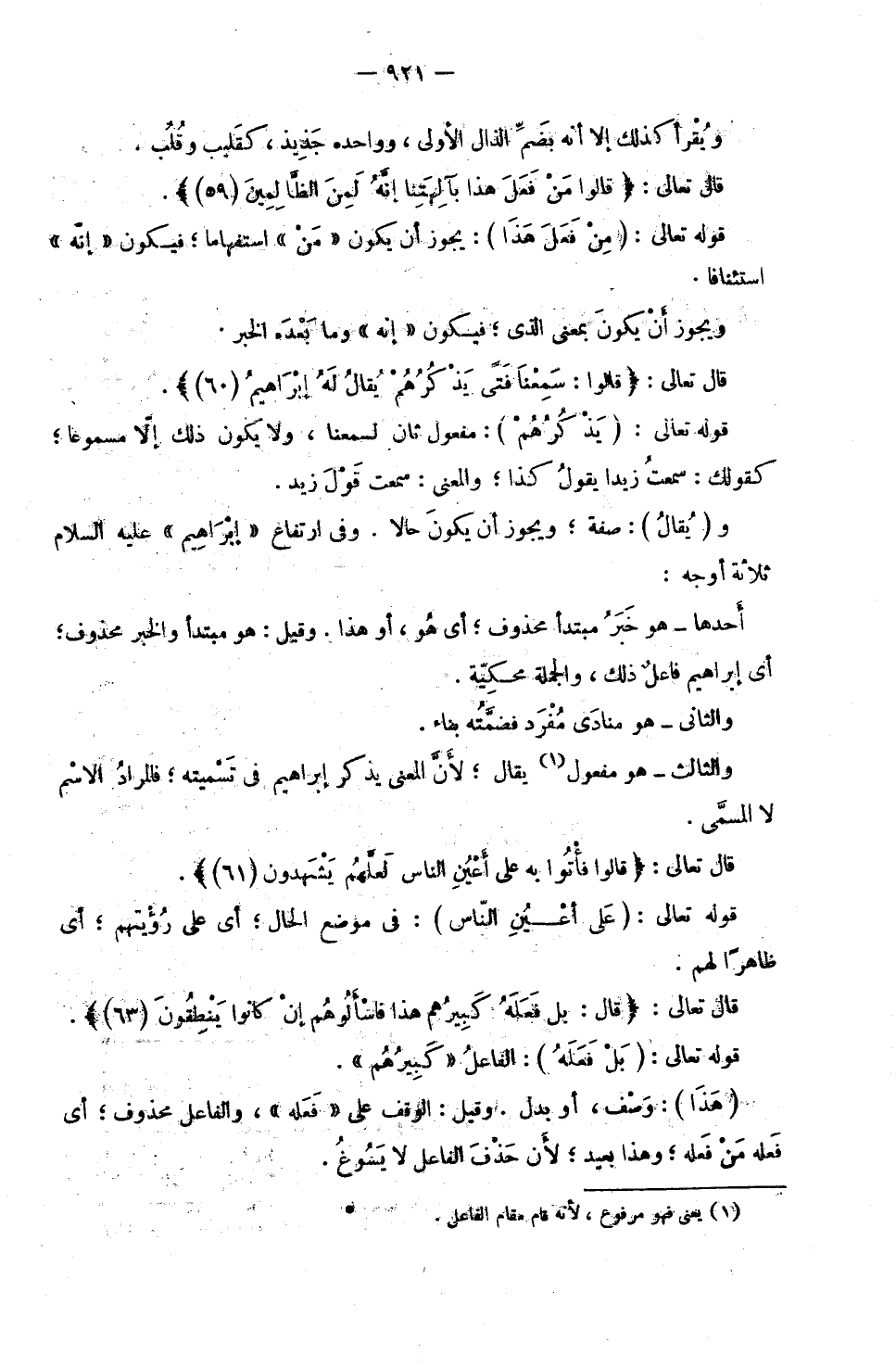 قَوْلُهُ تَعَالَى: (بَلْ فَعَلَهُ) : الْفَاعِلُ «كَبِيرُهُمْ» .
