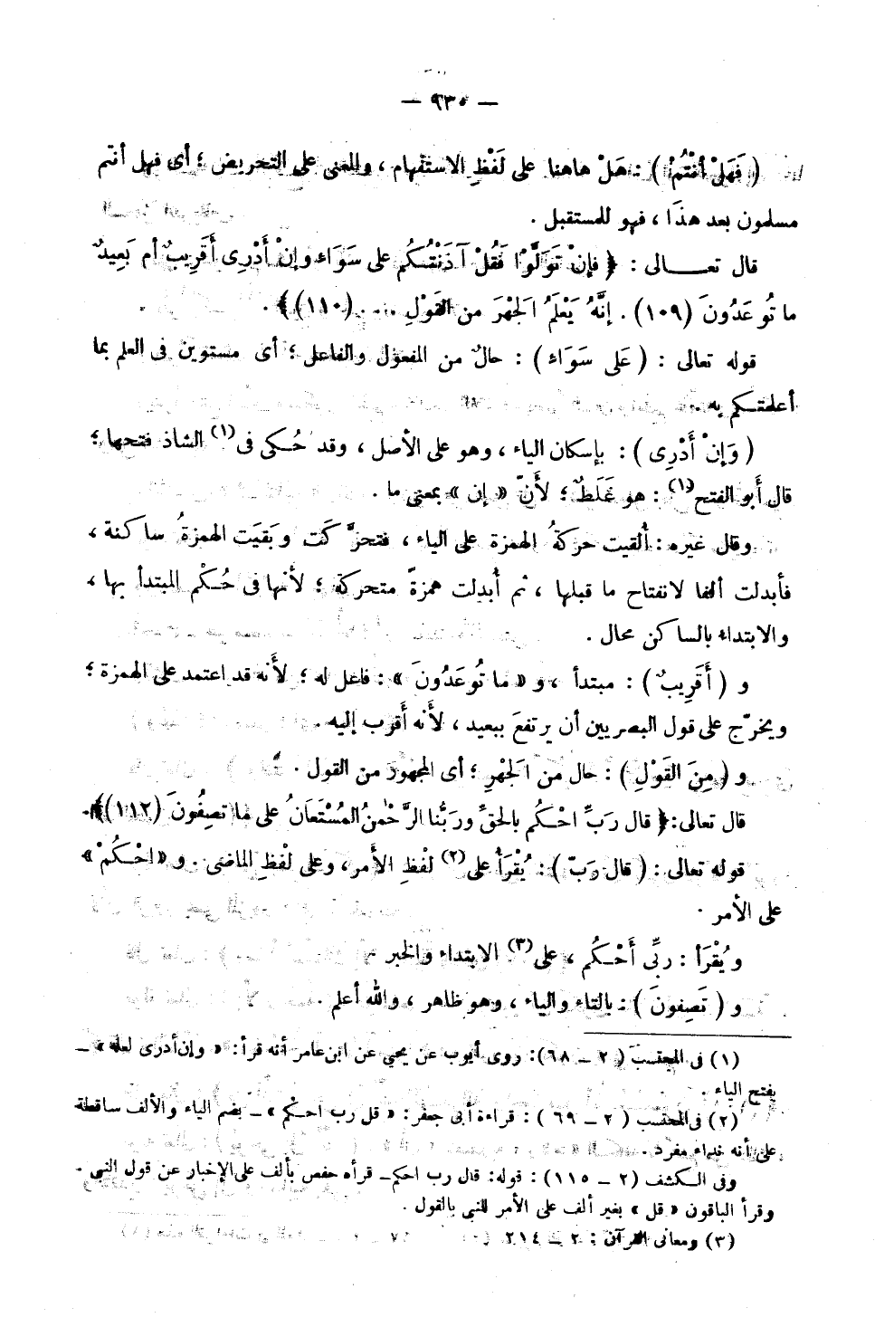 قَالَ تَعَالَى: (فَإِنْ تَوَلَّوْا فَقُلْ آذَنْتُكُمْ عَلَى سَوَاءٍ وَإِنْ أَدْرِي أَقَرِيبٌ أَمْ بَعِيدٌ مَا تُوعَدُونَ إِنَّهُ يَعْلَمُ الْجَهْرَ مِنَ الْقَوْلِ وَيَعْلَمُ مَا تَكْتُمُونَ (110))