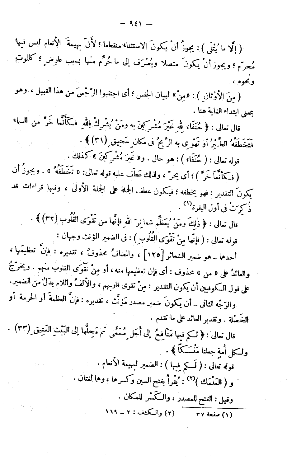 قَالَ تَعَالَى: (لَكُمْ فِيهَا مَنَافِعُ إِلَى أَجَلٍ مُسَمًّى ثُمَّ مَحِلُّهَا إِلَى الْبَيْتِ الْعَتِيقِ (33) وَلِكُلِّ أُمَّةٍ جَعَلْنَا مَنْسَكًا لِيَذْكُرُوا اسْمَ اللَّهِ عَلَى مَا رَزَقَهُمْ مِنْ بَهِيمَةِ الْأَنْعَامِ فَإِلَهُكُمْ إِلَهٌ وَاحِدٌ فَلَهُ أَسْلِمُوا وَبَشِّرِ الْمُخْبِتِينَ (34)) .