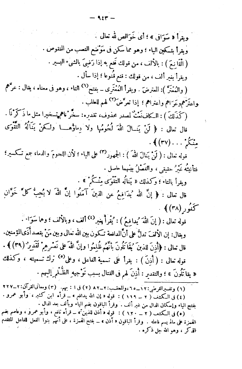 قَوْلُهُ تَعَالَى: (لَنْ يَنَالَ اللَّهَ) : الْجُمْهُورُ عَلَى الْيَاءِ ; لِأَنَّ اللُّحُومَ وَالدِّمَاءَ جَمْعُ تَكْسِيرٍ ; فَتَأْنِيثُهُ غَيْرُ حَقِيقِيٍّ، وَالْفَصْلُ بَيْنَهُمَا حَاصِلٌ.