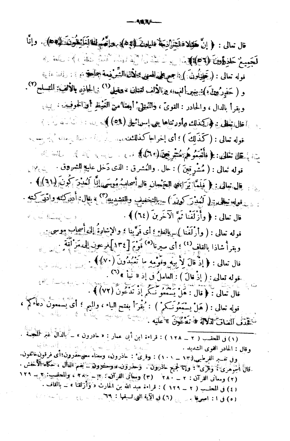 وَ (حَذِرُونَ) : بِغَيْرِ أَلِفٍ، وَبِالْأَلِفِ لُغَتَانِ، وَقِيلَ: الْحَاذِرُ بِالْأَلْفِ: الْمُتَسَلِّحُ. وَيُقْرَأُ بِالدَّالِ، وَالْحَادِرُ: الْقَوِيُّ، وَالْمُمْتَلِئُ أَيْضًا مِنَ الْغَيْظِ أَوِ الْخَوْفِ.