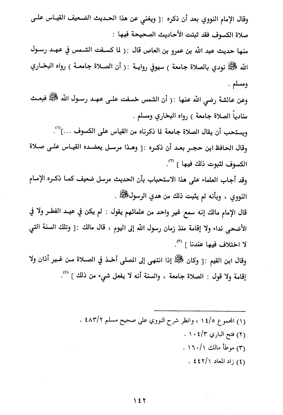 منها حديث عبد الله بن عمرو بن العاص قال: (لما كسفت الشمس في عهد رسول الله - صلى الله عليه وسلم - نودي بالصلاة جامعة) سيوفي رواية: (أن الصلاة جامعة) رواه البخاري ومسلم.