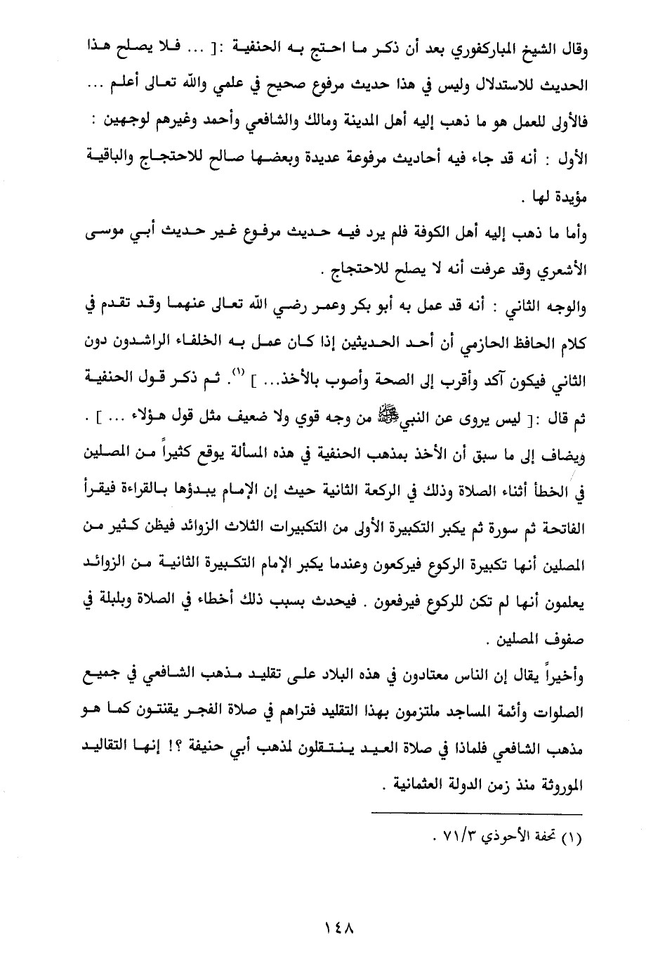 وقال الشيخ المباركفوري بعد أن ذكر ما احتج به الحنفية: [ ... فلا يصلح هذا الحديث للاستدلال وليس في هذا حديث مرفوع صحيح في علمي والله تعالى أعلم ... فالأولى للعمل هو ما ذهب إليه أهل المدينة ومالك والشافعي وأحمد وغيرهم لوجهين: