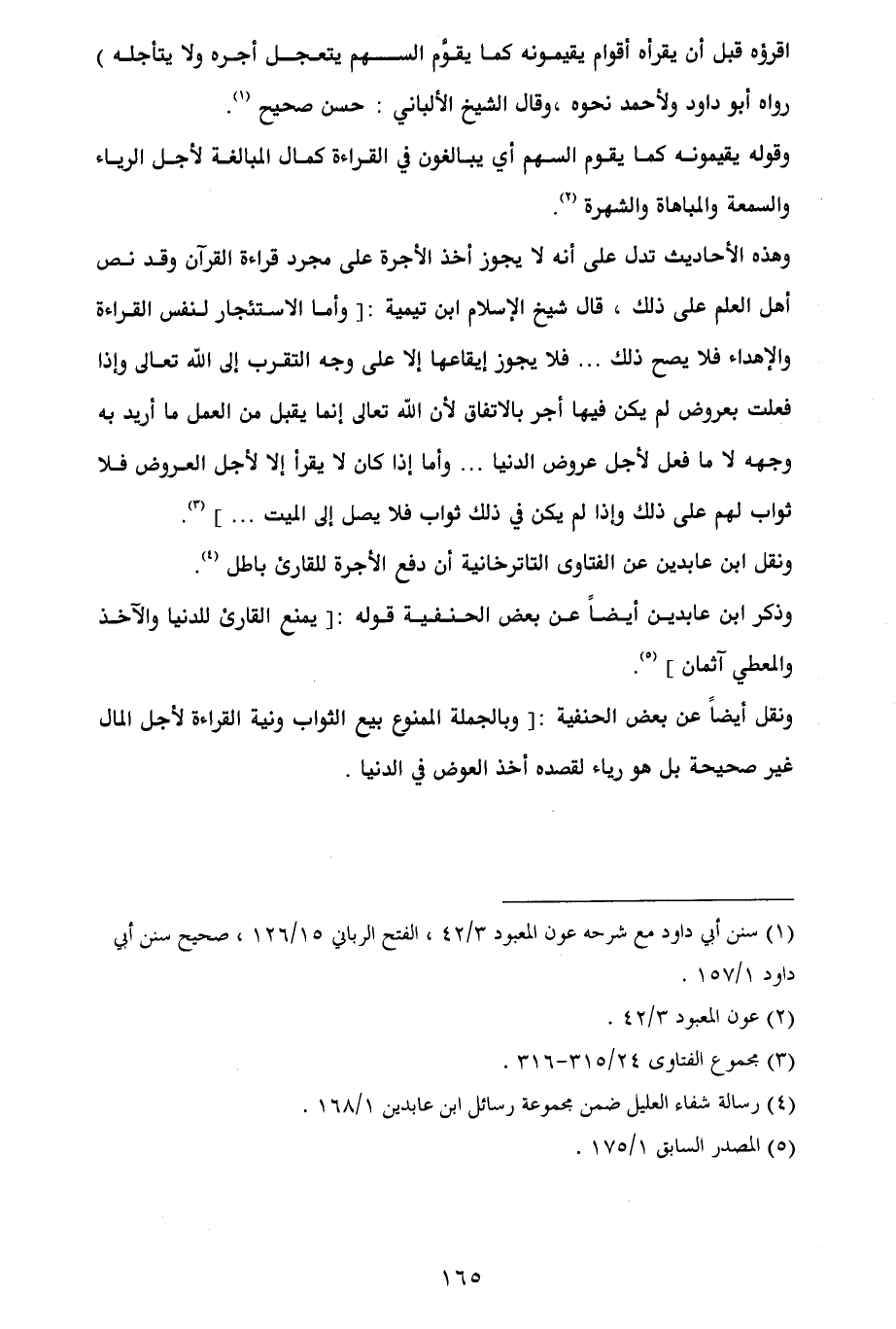 وذكر ابن عابدين أيضاً عن بعض الحنفية قوله: [يمنع القارئ للدنيا والآخذ والمعطي آثمان] (¬5).
