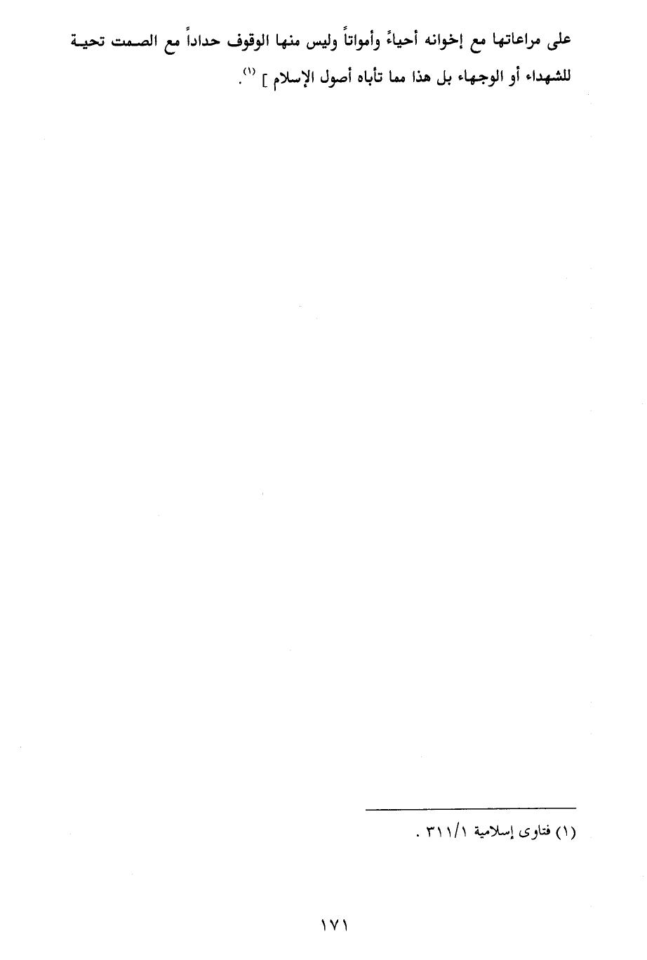 على مراعاتها مع إخوانه أحياءً وأمواتاً وليس منها الوقوف حداداً مع الصمت تحية للشهداء أو الوجهاء بل هذا مما تأباه أصول الإسلام] (¬1).