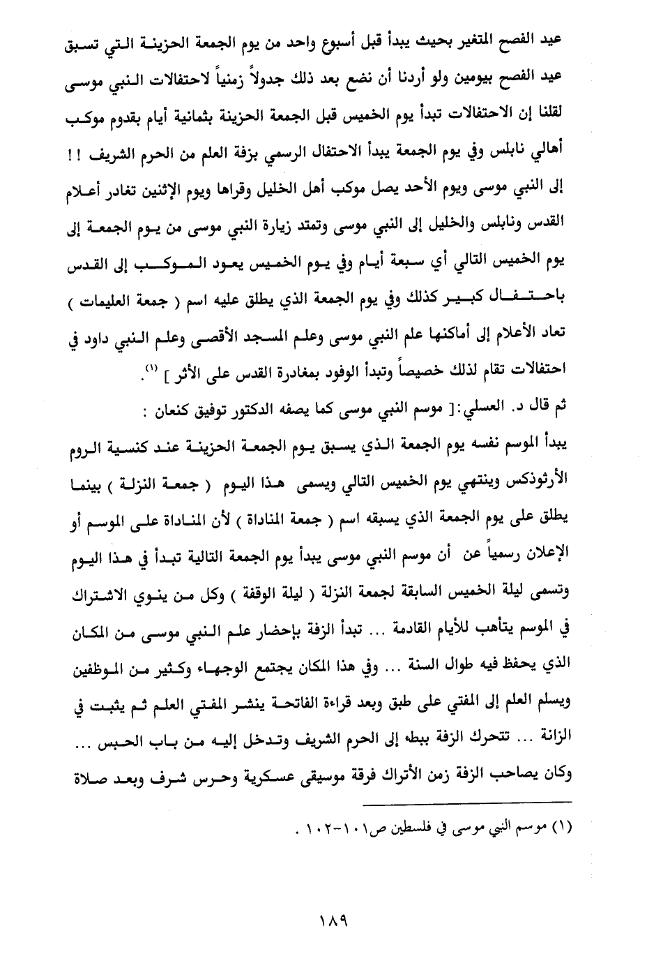 (¬1) موسم النبي موسى في فلسطين ص101 - 102.