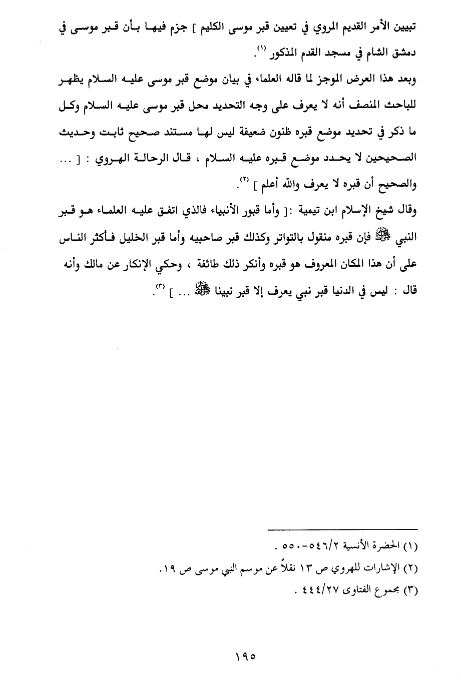 تبيين الأمر القديم المروي في تعيين قبر موسى الكليم] جزم فيها بأن قبر موسى في دمشق الشام في مسجد القدم المذكور (¬1).