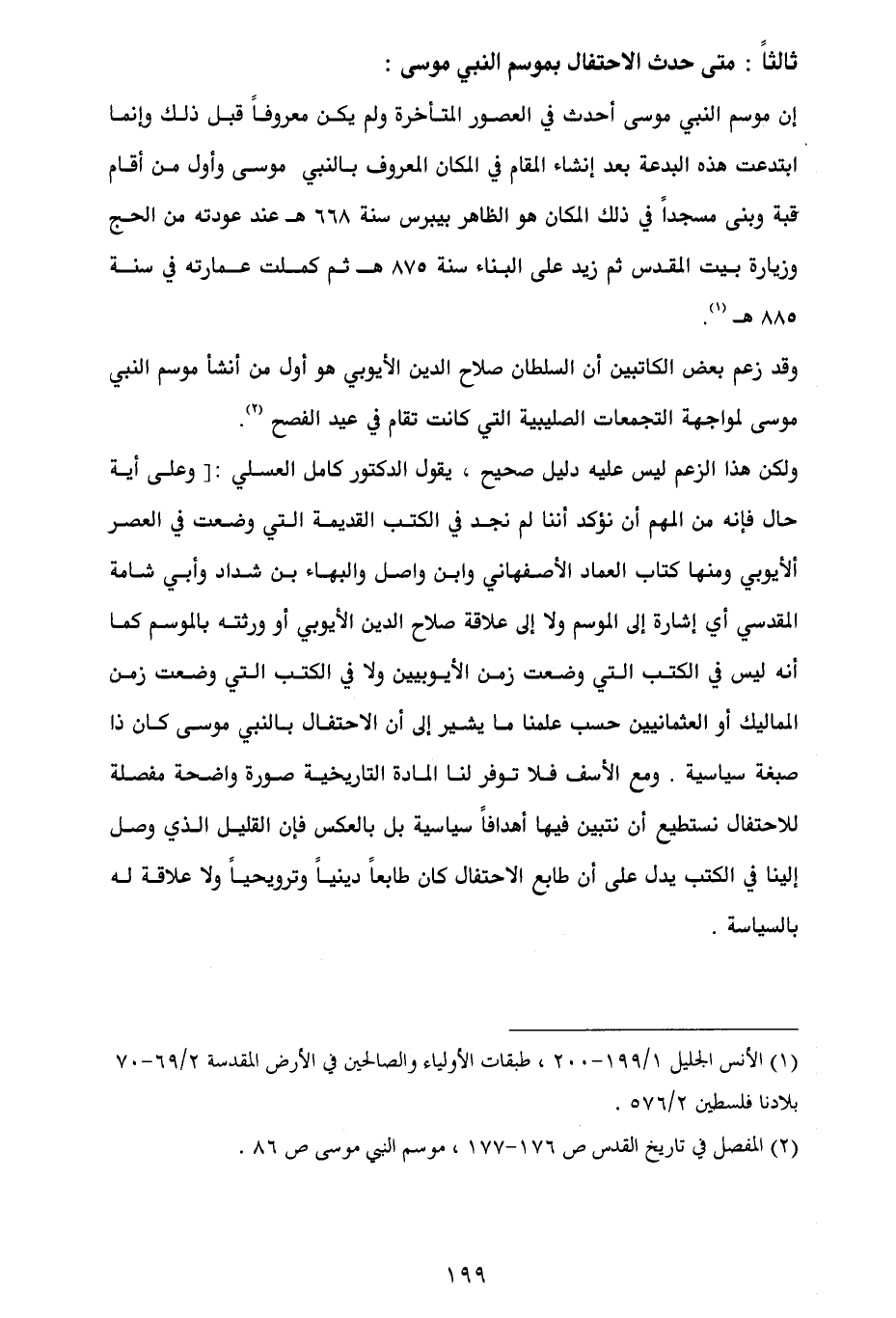 (¬2) المفصل في تاريخ القدس ص 176 - 177، موسم النبي موسى ص 86.