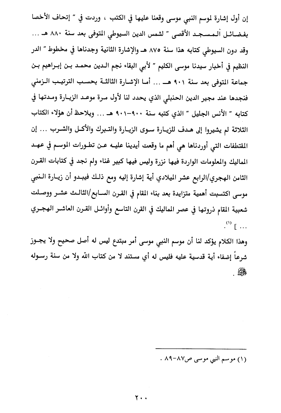 وهذا الكلام يؤكد لنا أن موسم النبي موسى أمر مبتدع ليس له أصل صحيح ولا يجوز شرعاً إضفاء أية قدسية عليه فليس له أي مستند لا من كتاب الله ولا من سنة رسوله - صلى الله عليه وسلم -.
