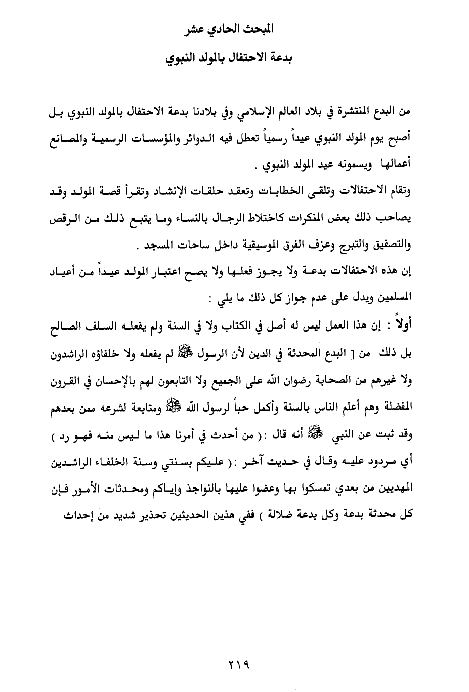 إن هذه الاحتفالات بدعة ولا يجوز فعلها ولا يصح اعتبار المولد عيداً من أعياد المسلمين ويدل على عدم جواز كل ذلك ما يلي: