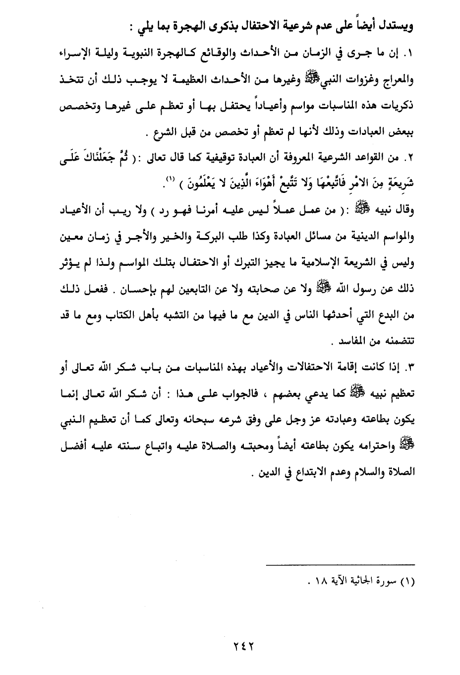 ويستدل أيضاً على عدم شرعية الاحتفال بذكرى الهجرة بما يلي: