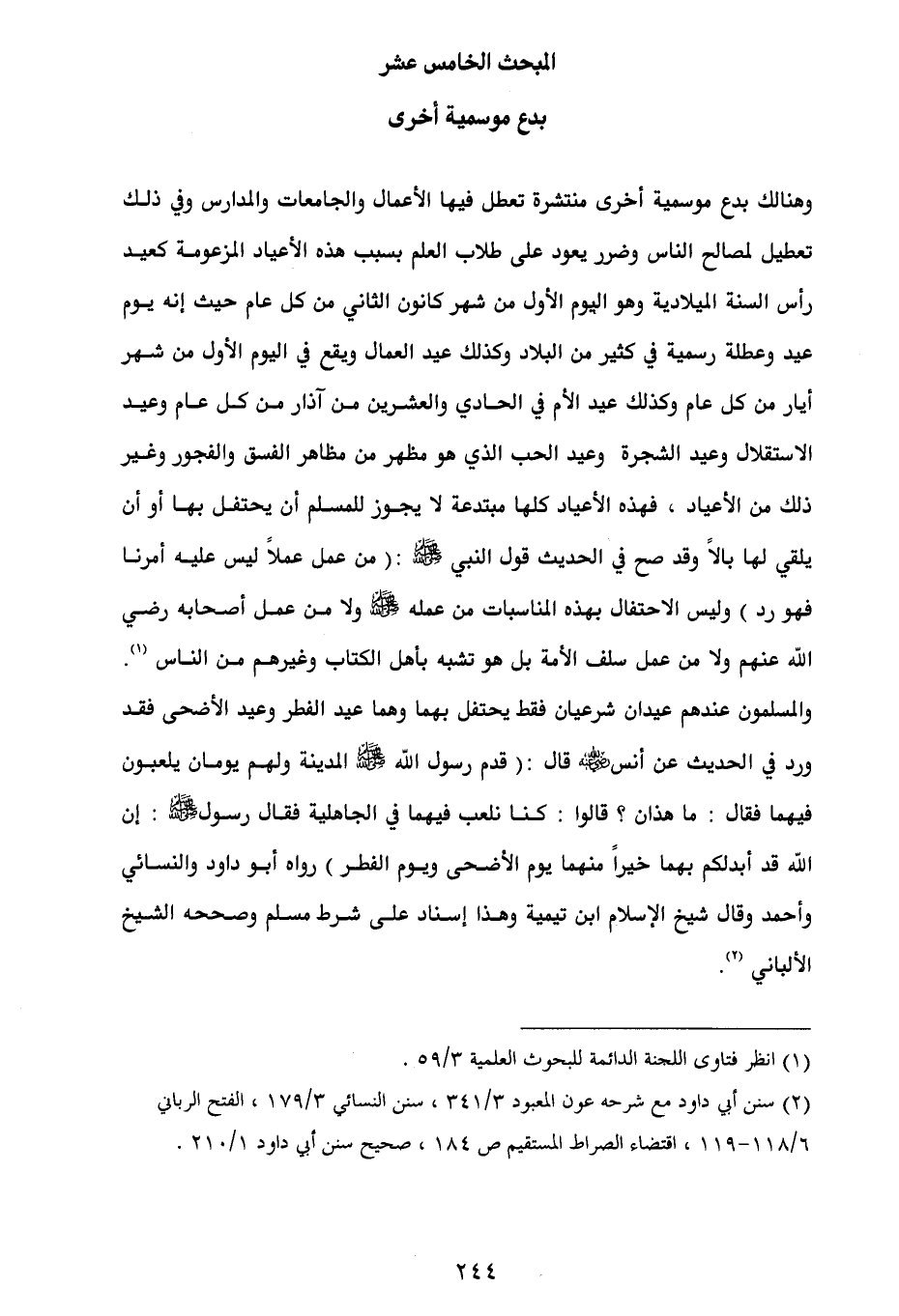 (¬2) سنن أبي داود مع شرحه عون المعبود 3/ 341، سنن النسائي 3/ 179، الفتح الرباني 6/ 118 - 119، اقتضاء الصراط المستقيم ص 184، صحيح سنن أبي داود 1/ 210.