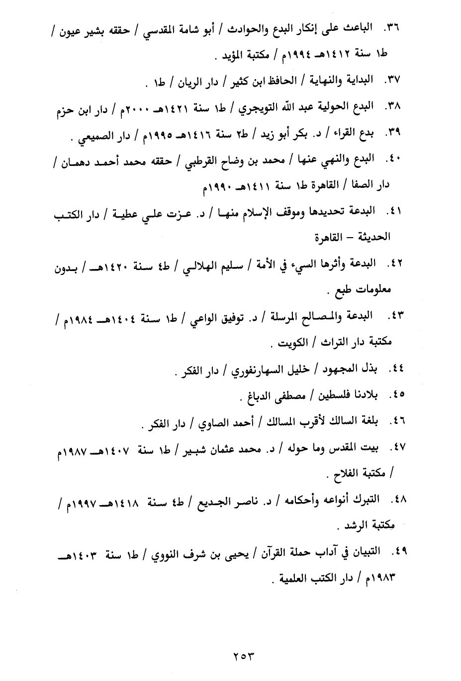 40. البدع والنهي عنها / محمد بن وضاح القرطبي / حققه محمد أحمد دهمان / دار الصفا / القاهرة ط1 سنة 1411هـ 1990م