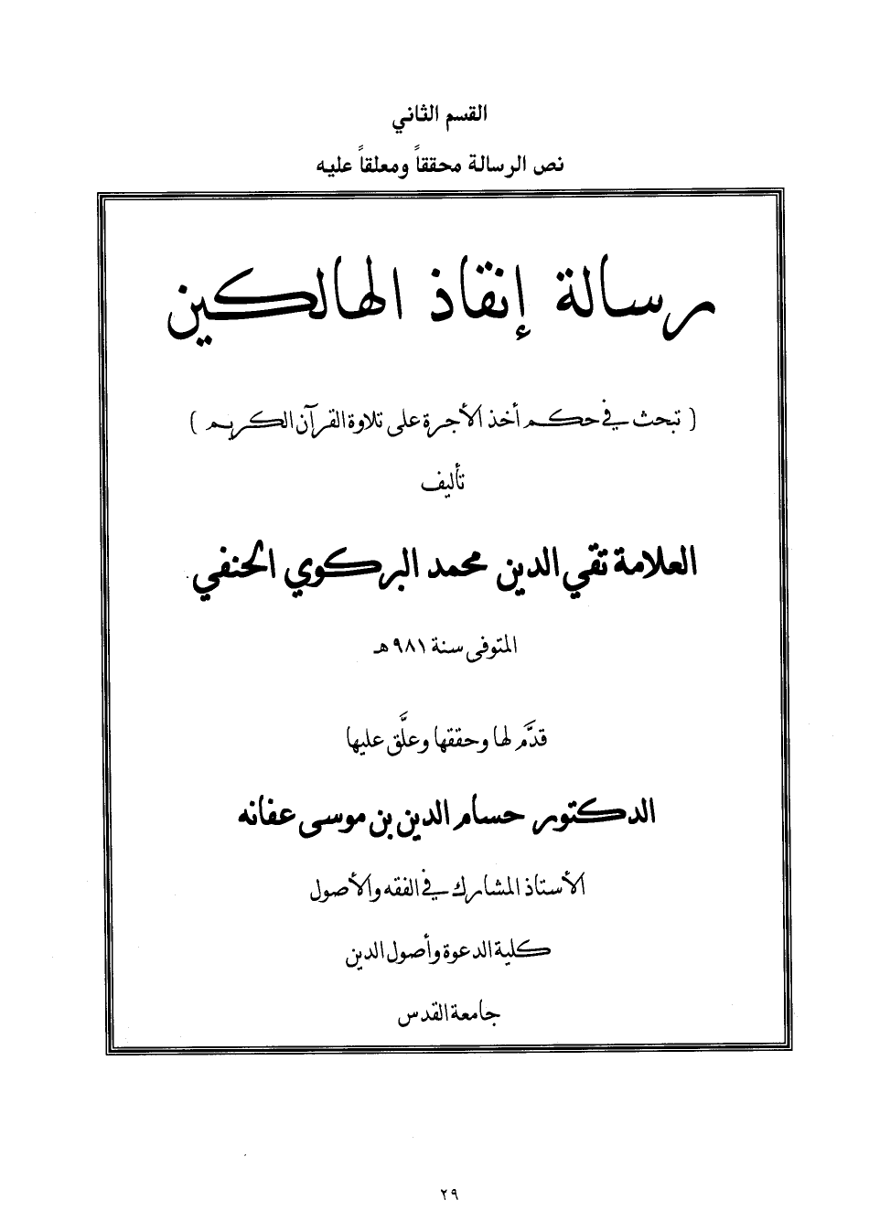 كتاب رسالة إنقاذ الهالكين في حكم أخذ الأجرة على تلاوة القرآن الكريم
