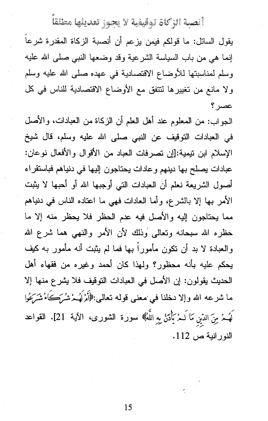 أنصبة الزكاة توقيفية لا يجوز تعديلها مطلقاً