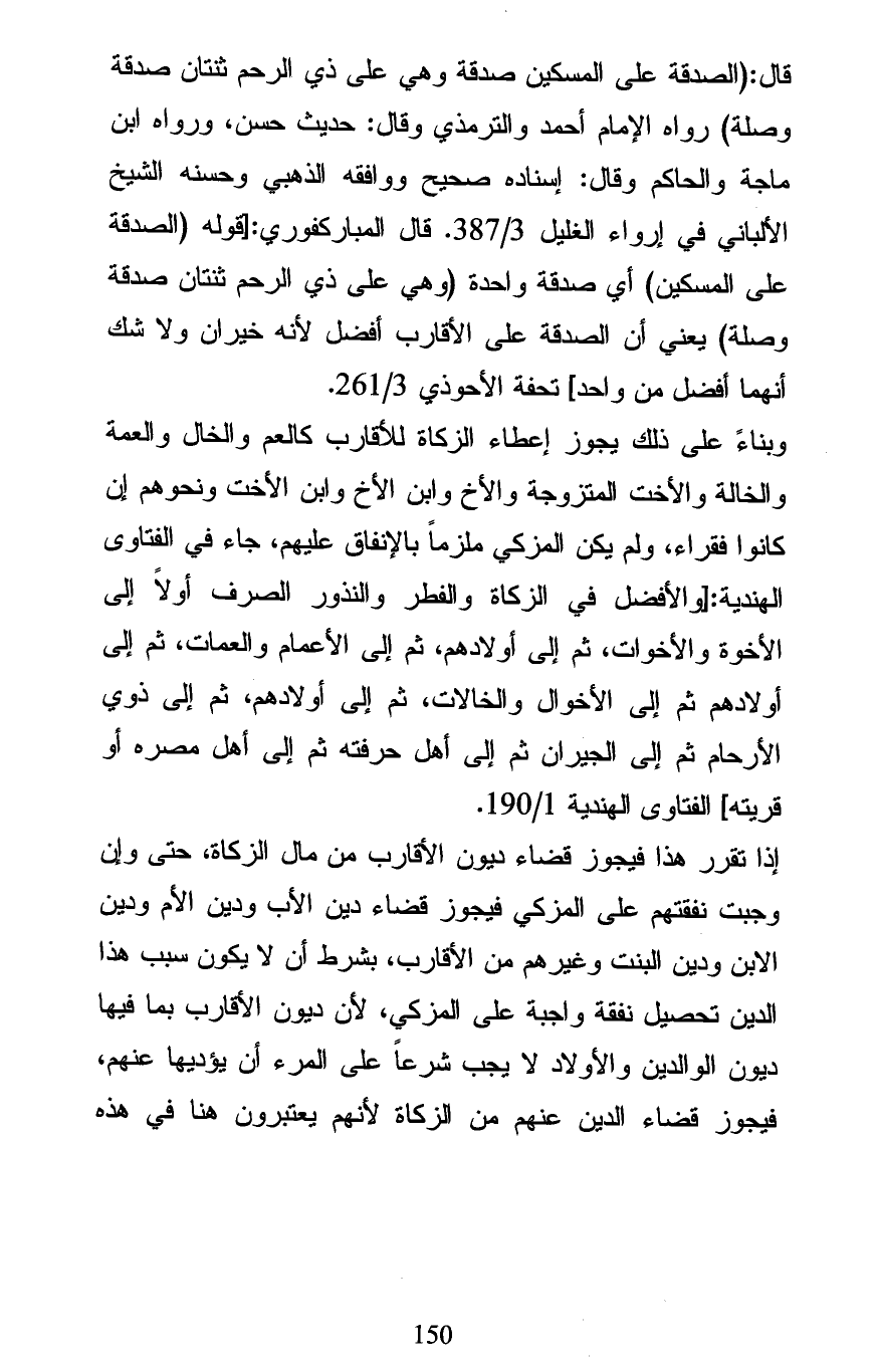 قال: (الصدقة على المسكين صدقة وهي على ذي الرحم ثنتان صدقة وصلة) رواه الإمام أحمد والترمذي وقال: حديث حسن، ورواه ابن ماجة والحاكم وقال: إسناده صحيح ووافقه الذهبي وحسنه الشيخ الألباني في إرواء الغليل 3/ 387. قال المباركفوري: [قوله (الصدقة على المسكين) أي صدقة واحدة (وهي على ذي الرحم ثنتان صدقة وصلة) يعني أن الصدقة على الأقارب أفضل لأنه خيران ولا شك أنهما أفضل من واحد] تحفة الأحوذي 3/ 261.