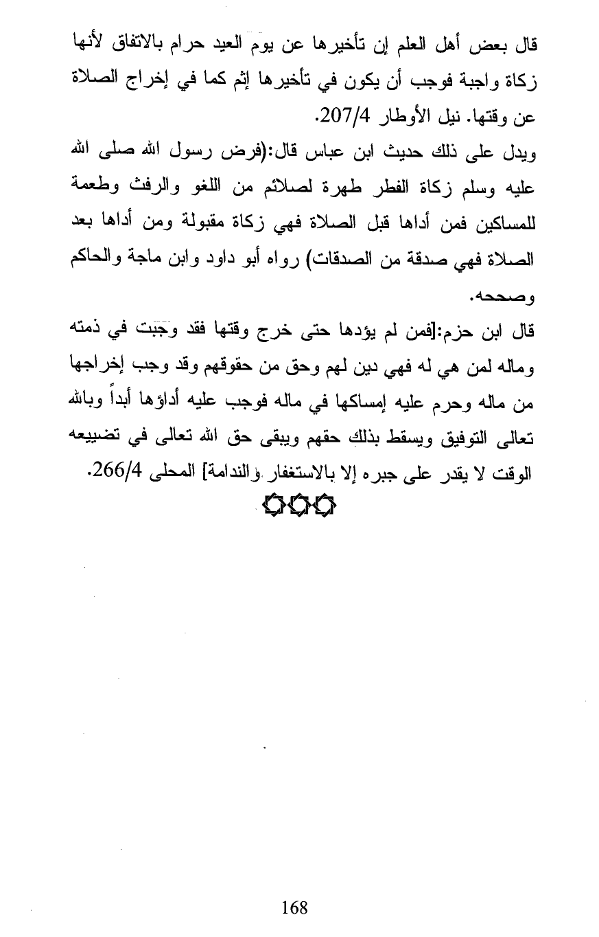 قال بعض أهل العلم إن تأخيرها عن يوم العيد حرام بالاتفاق لأنها زكاة واجبة فوجب أن يكون في تأخيرها إثم كما في إخراج الصلاة عن وقتها. نيل الأوطار 4/ 207.