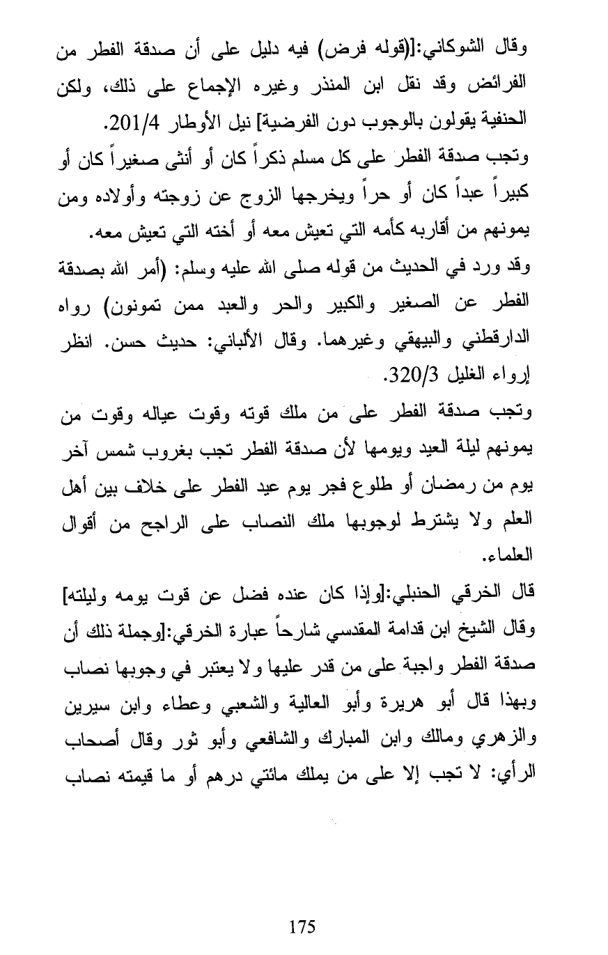 وقال الشوكاني: [(قوله فرض) فيه دليل على أن صدقة الفطر من الفرائض وقد نقل ابن المنذر وغيره الإجماع على ذلك، ولكن الحنفية يقولون بالوجوب دون الفرضية] نيل الأوطار 4/ 201.