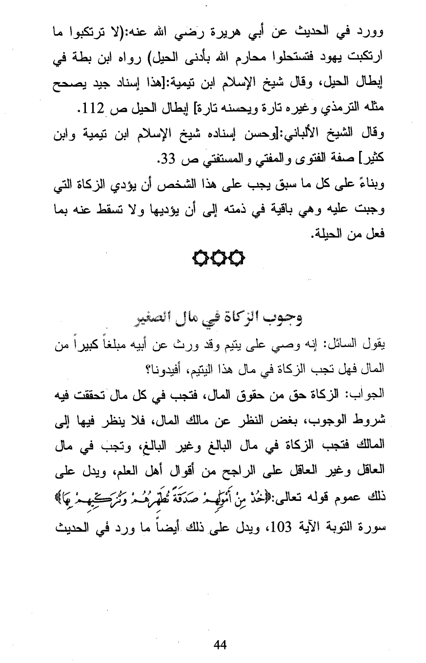 وورد في الحديث عن أبي هريرة رضي الله عنه: (لا ترتكبوا ما ارتكبت يهود فتستحلوا محارم الله بأدنى الحيل) رواه ابن بطة في إبطال الحيل، وقال شيخ الإسلام ابن تيمية: [هذا إسناد جيد يصحح مثله الترمذي وغيره تارة ويحسنه تارة] إبطال الحيل ص 112.