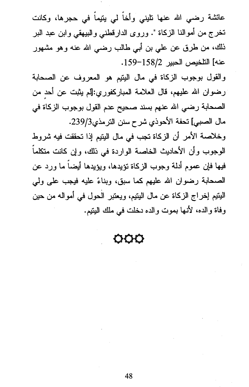 عائشة رضي الله عنها تليني وأخاً لي يتيماً في حجرها، وكانت تخرج من أموالنا الزكاة ". وروى الدارقطني والبيهقي وابن عبد البر ذلك، من طرق عن علي بن أبي طالب رضي الله عنه وهو مشهور عنه] التلخيص الحبير 2/ 158 - 159.
