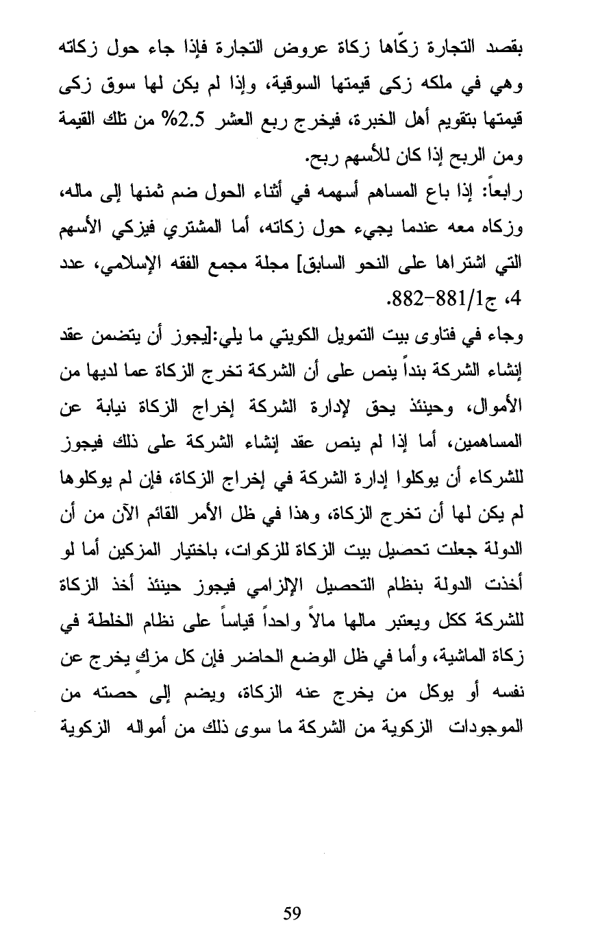 وجاء في فتاوى بيت التمويل الكويتي ما يلي: [يجوز أن يتضمن عقد إنشاء الشركة بنداً ينص على أن الشركة تخرج الزكاة عما لديها من الأموال، وحينئذ يحق لإدارة الشركة إخراج الزكاة نيابة عن المساهمين، أما إذا لم ينص عقد إنشاء الشركة على ذلك فيجوز للشركاء أن يوكلوا إدارة الشركة في إخراج الزكاة، فإن لم يوكلوها لم يكن لها أن تخرج الزكاة، وهذا في ظل الأمر القائم الآن من أن الدولة جعلت تحصيل بيت الزكاة للزكوات، باختيار المزكين أما لو أخذت الدولة بنظام التحصيل الإلزامي فيجوز حينئذ أخذ الزكاة للشركة ككل ويعتبر مالها مالاً واحداً قياساً على نظام الخلطة في زكاة الماشية، وأما في ظل الوضع الحاضر فإن كل مزكٍ يخرج عن نفسه أو يوكل من يخرج عنه الزكاة، ويضم إلى حصته من الموجودات الزكوية من الشركة ما سوى ذلك من أمواله الزكوية