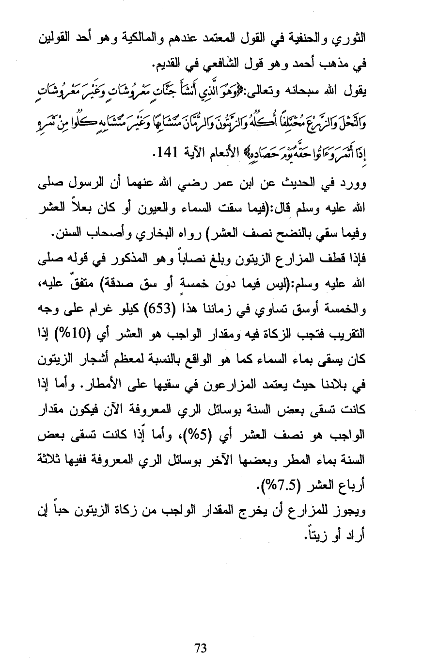 يقول الله سبحانه وتعالى: (وَهُوَ الَّذِي أَنْشَأَ جَنَّاتٍ مَعْرُوشَاتٍ وَغَيْرَ مَعْرُوشَاتٍ وَالنَّخْلَ وَالزَّرْعَ مُخْتَلِفًا أُكُلُهُ وَالزَّيْتُونَ وَالرُّمَّانَ مُتَشَابِهًا وَغَيْرَ مُتَشَابِهٍ كُلُوا مِنْ ثَمَرِهِ إِذَا أَثْمَرَ وَءَاتُوا حَقَّهُ يَوْمَ حَصَادِهِ (الأنعام الآية 141.