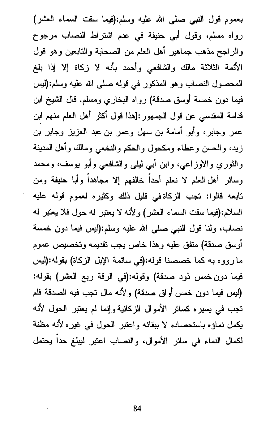 بعموم قول النبي صلى الله عليه وسلم: (فيما سقت السماء العشر) رواه مسلم، وقول أبي حنيفة في عدم اشتراط النصاب مرجوح والراجح مذهب جماهير أهل العلم من الصحابة والتابعين وهو قول الأئمة الثلاثة مالك والشافعي وأحمد بأنه لا زكاة إلا إذا بلغ المحصول النصاب وهو المذكور في قوله صلى الله عليه وسلم: (ليس فيما دون خمسة أوسق صدقة) رواه البخاري ومسلم. قال الشيخ ابن قدامة المقدسي عن قول الجمهور: [هذا قول أكثر أهل العلم منهم ابن عمر وجابر، وأبو أمامة بن سهل وعمر بن?عبد العزيز وجابر بن زيد، والحسن وعطاء ومكحول والحكم والنخعي ومالك وأهل?المدينة والثوري والأوزاعي، وابن أبي ليلى والشافعي وأبو يوسف، ومحمد وسائر أهل?العلم لا نعلم أحداً خالفهم إلا مجاهدا ً وأبا حنيفة ومن تابعه قالوا: تجب الزكاة?في قليل ذلك وكثيره لعموم قوله عليه السلام: (فيما سقت السماء العشر) ولأنه?لا يعتبر له حول فلا يعتبر له نصاب، ولنا قول النبي صلى الله عليه وسلم: (ليس فيما دون خمسة أوسق صدقة) متفق عليه وهذا خاص يجب تقديمه وتخصيص عموم ما?رووه به كما خصصنا قوله: (في سائمة الإبل الزكاة) بقوله: (ليس فيما دون?خمس ذود صدقة) وقوله: (في الرقة ربع العشر) بقوله: (ليس فيما دون خمس?أواق صدقة) ولأنه مال تجب فيه الصدقة فلم تجب في يسيره كسائر الأموال الزكائية?وإنما لم يعتبر الحول لأنه يكمل نماؤه باستحصاده لا ببقائه واعتبر الحول في غيره?لأنه مظنة لكمال النماء في سائر الأموال، والنصاب اعتبر ليبلغ حداً يحتمل