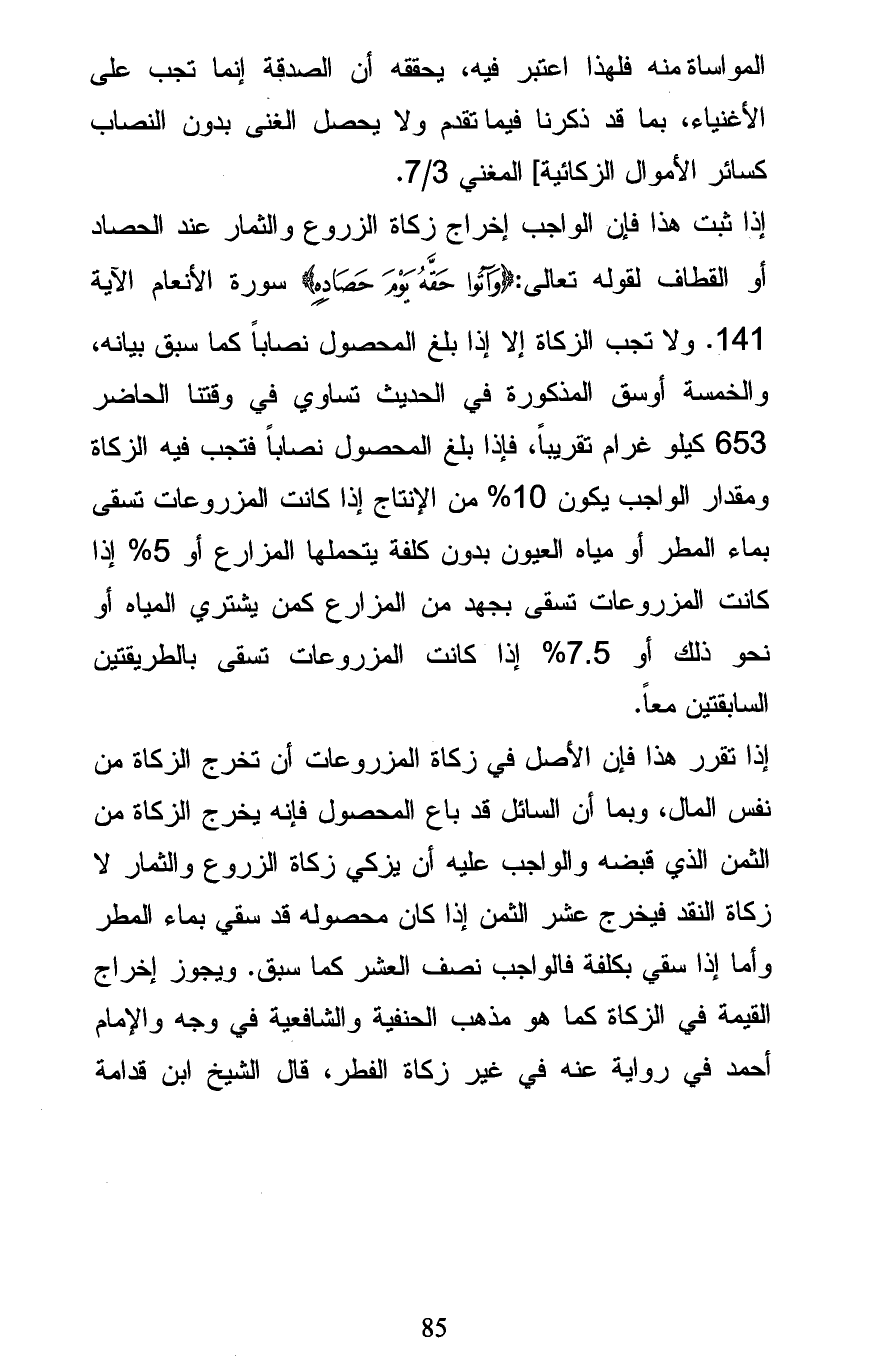 المواساة?منه فلهذا اعتبر فيه، يحققه أن الصدقة إنما تجب على الأغنياء، بما قد ذكرنا فيما?تقدم ولا يحصل الغنى بدون النصاب كسائر الأموال الزكائية] المغني 3/ 7.