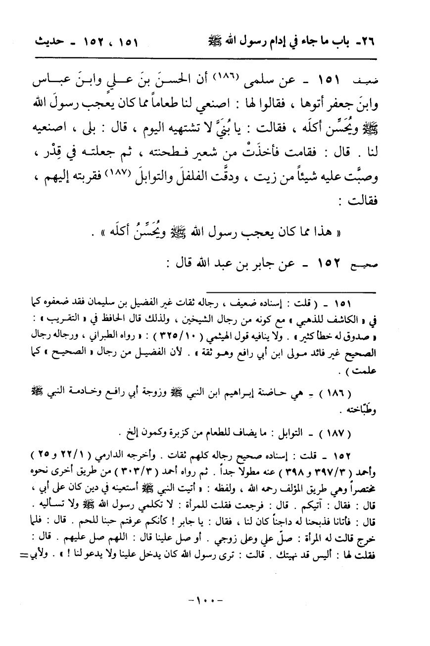 أتانا النبي صَلَّى اللَّهُ عَلَيْهِ وَسَلَّم َ فِي مَنْزِلِنَا فَذَبَحْنَا لَهُ شَاةً فَقَالَ: (كَأَنَّهُمْ عَلِمُوا أَنَّا نُحِبُّ اللَّحْمَ)