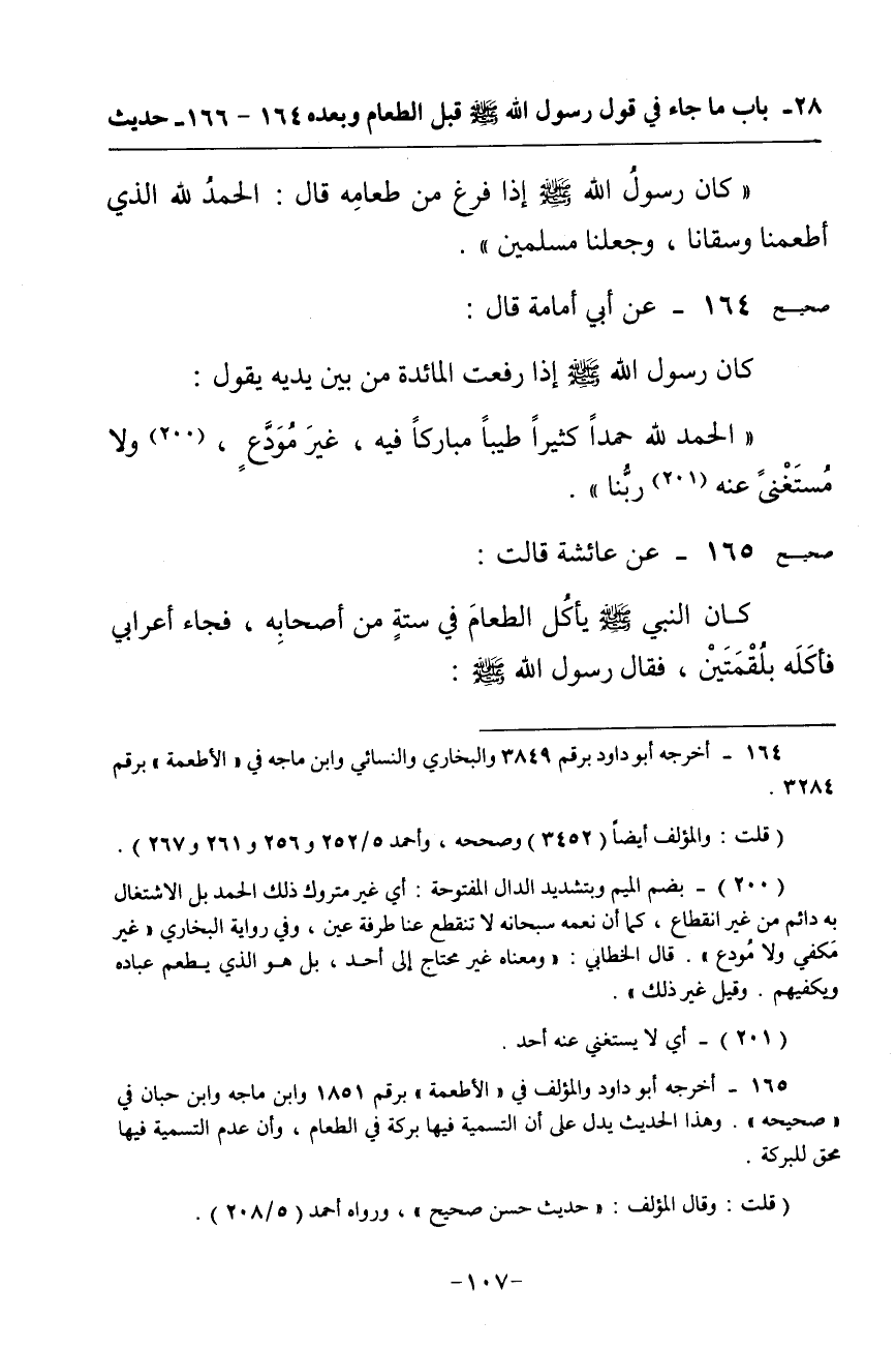 (إِنَّ اللَّهَ لَيَرْضَى عَنِ الْعَبْدِ أَنْ يَأْكُلَ الْأَكْلَةَ فيحمده عليها أَوْ يَشْرَبَ الشَّرْبَةَ فَيَحْمَدَهُ عَلَيْهَا)
