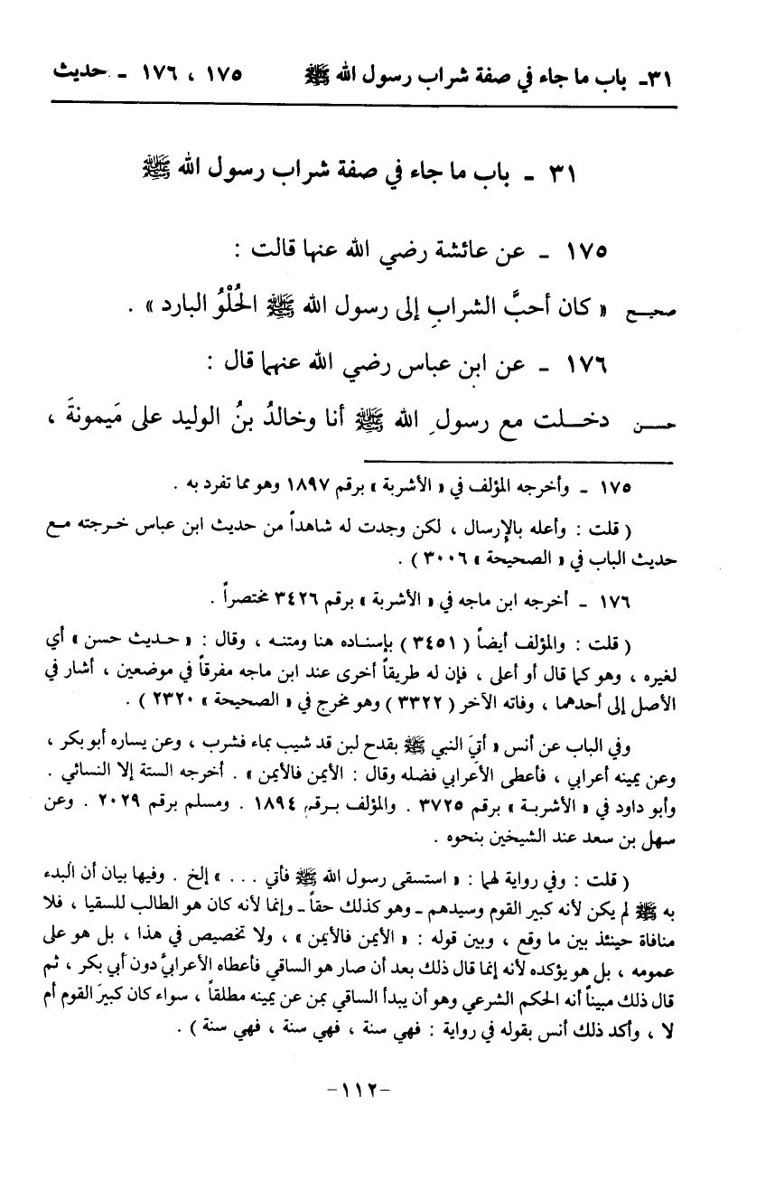 32 - بَابُ مَا جَاءَ فِي صِفَةِ شُرْبِ رَسُولِ اللَّهِ صَلَّى اللَّهُ عَلَيْهِ وَسَلَّم َ
