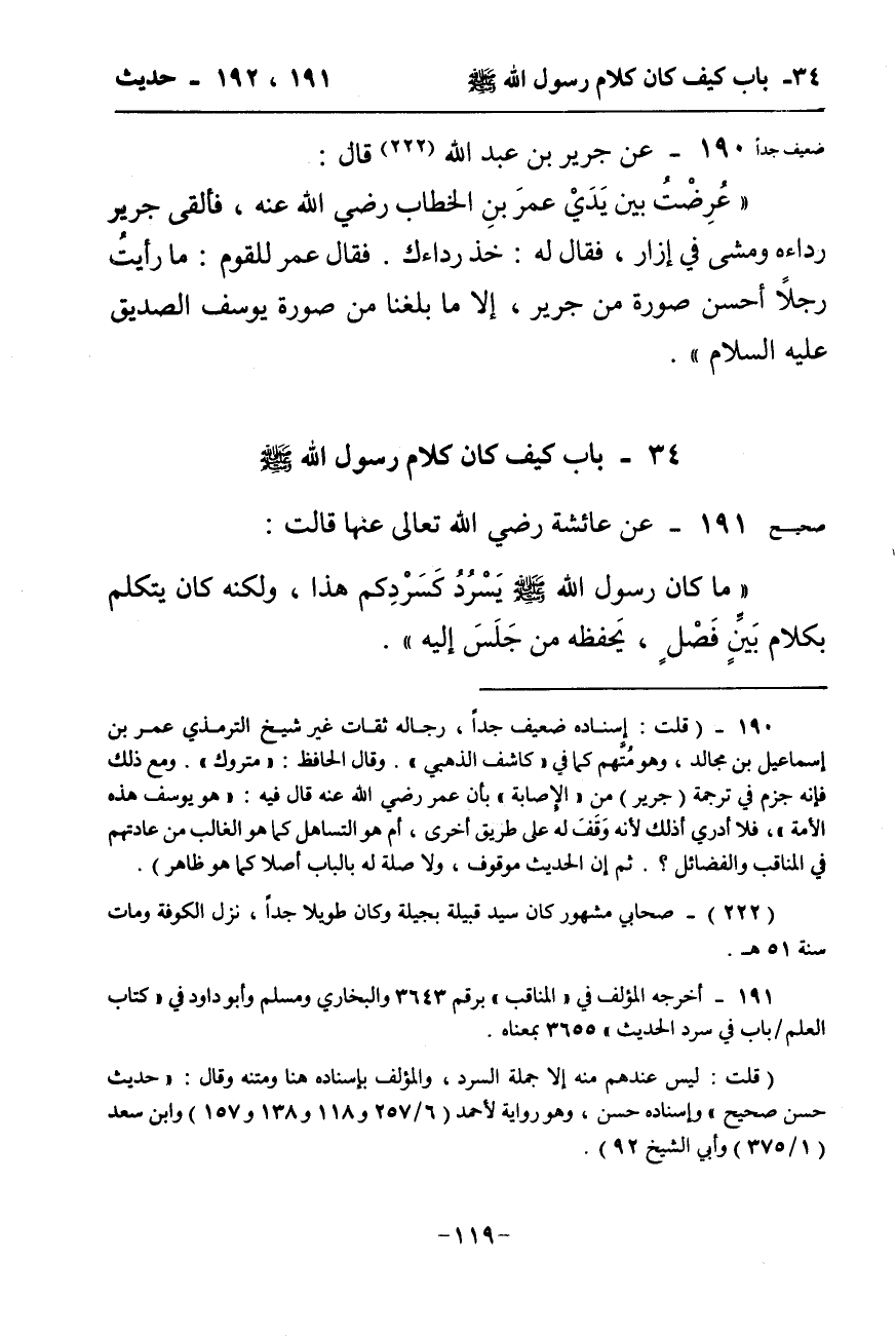 عن عائشة رضي الله تعالى عنها قَالَتْ: (مَا كَانَ رَسُولُ الله صَلَّى اللَّهُ عَلَيْهِ وَسَلَّم َ يسرد كسردكم هَذَا وَلَكِنَّهُ كَانَ يَتَكَلَّمُ بِكَلَامٍ بَيِّنٍ فَصْلٍ يَحْفَظُهُ من جلس إليه)