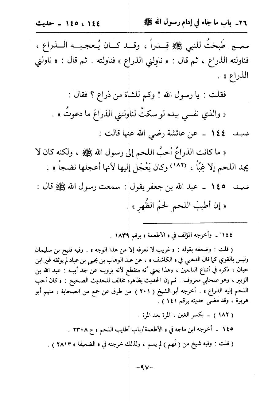عَبْدَ اللَّهِ بْنَ جَعْفَرٍ يَقُولُ: سَمِعْتُ رَسُولَ اللَّهِ صَلَّى اللَّهُ عَلَيْهِ وَسَلَّم َ قال: (إِنَّ أَطْيَبَ اللَّحْمِ لَحْمُ الظهر)