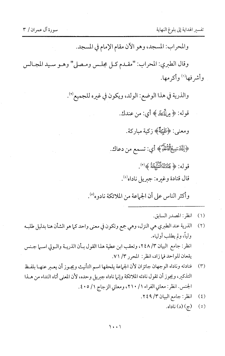 وقال الطبري: المحراب: " مقدم كل مجلس ومصلى " وهو سيد المجالس وأشرفها وأكرمها.