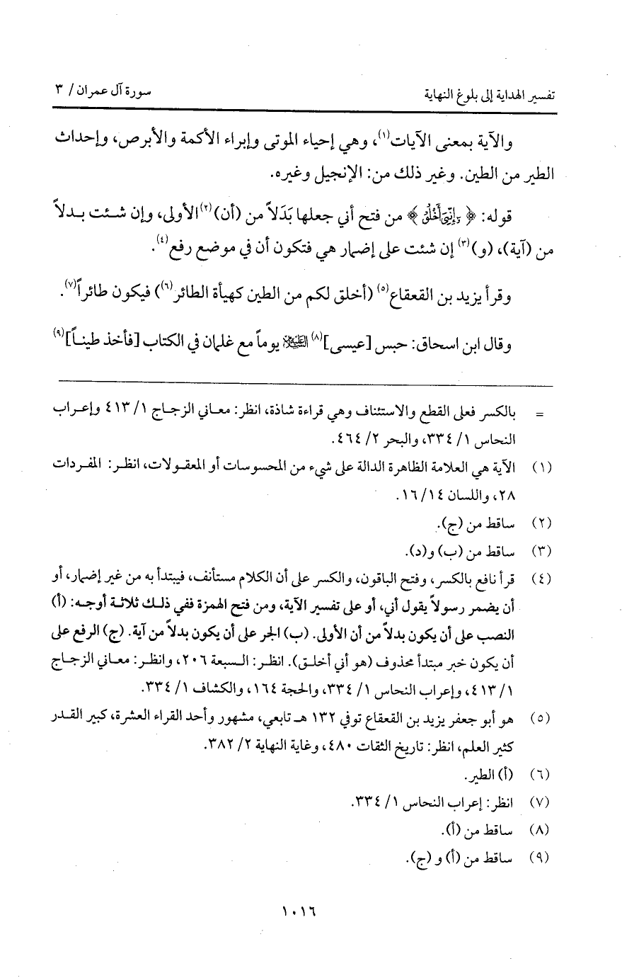 وقرأ يزيد بن القعقاع (أخلق لكم من الطين كهيأة الطائر) فيكون طائراً.