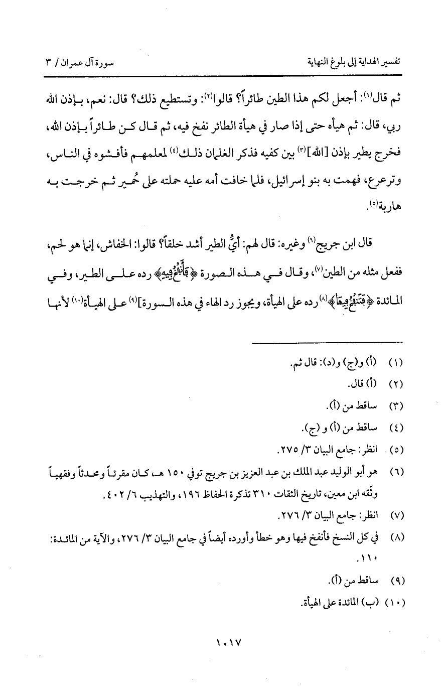 قال ابن جريج وغيره: قال لهم: أيُّ الطير أشد خلقاً؟ قالوا: الخفاش، إنما هو لحم، ففعل مثله من الطين، وقال في هذه الصمورة {فَأَنفُخُ فِيهِ} رده على الطير، وفي المائدة {فَتَنفُخُ فِيهَا} [المائدة: 110] رده على الهيأة، ويجوز رد الهاء في هذه السورة] على الهيأة لأنها