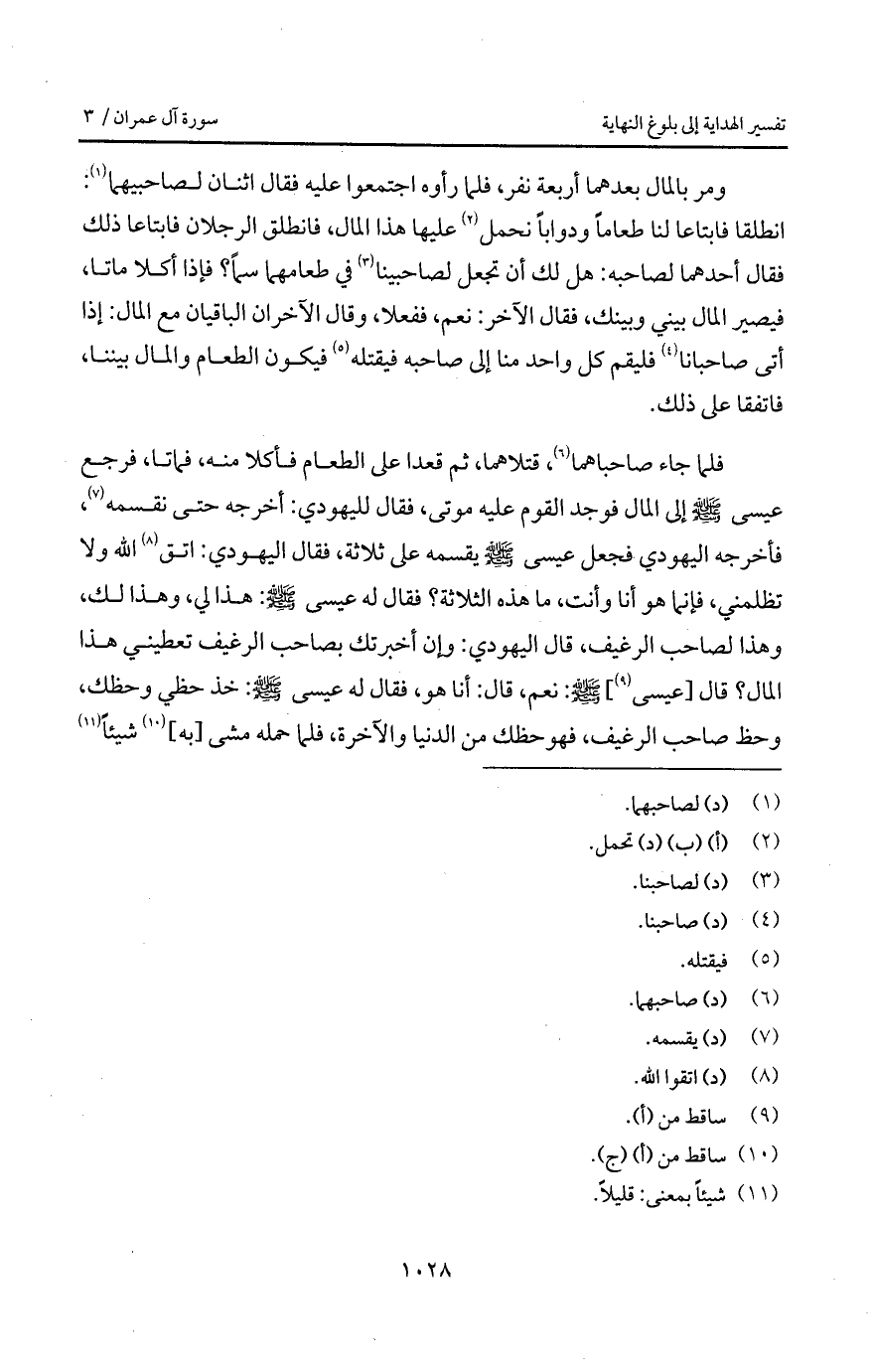 فلما جاء صاحباهما، قتلاهما، ثم قعدا على الطعام فأكلا منه، فماتا، فرجع عيسى A إلى المال فوجد القوم عليه موتى، فقال لليهودي: أخرجه حتى نقسمه، فأخرجه اليهودي فجعل عيسى A يقسمه على ثلاثة، فقال اليهودي: اتق الله ولا تظلمني، فإنما هو أنا وأنت، ما هذه الثلاثة؟ فقال له عيسى A: هذا لي، وهذا لك، وهذا لصاحب الرغيف، قال اليهودي: وإن أخبرتك بصاحب الرغيف تعطيني هذا المال؟ قال [عيسى] A: نعم، قال: أنا هو، فقال له عيسى A: خذ حظي وحظك، وحظ صاحب الرغيف، فهو حظك من الدنيا والآخرة، فلما حمله مشى [به] شيئاً